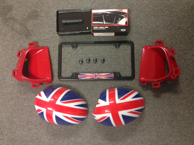 FS:: Mini Union Jack Mirror Caps License Plate Short Antenna Brake Duct Vent