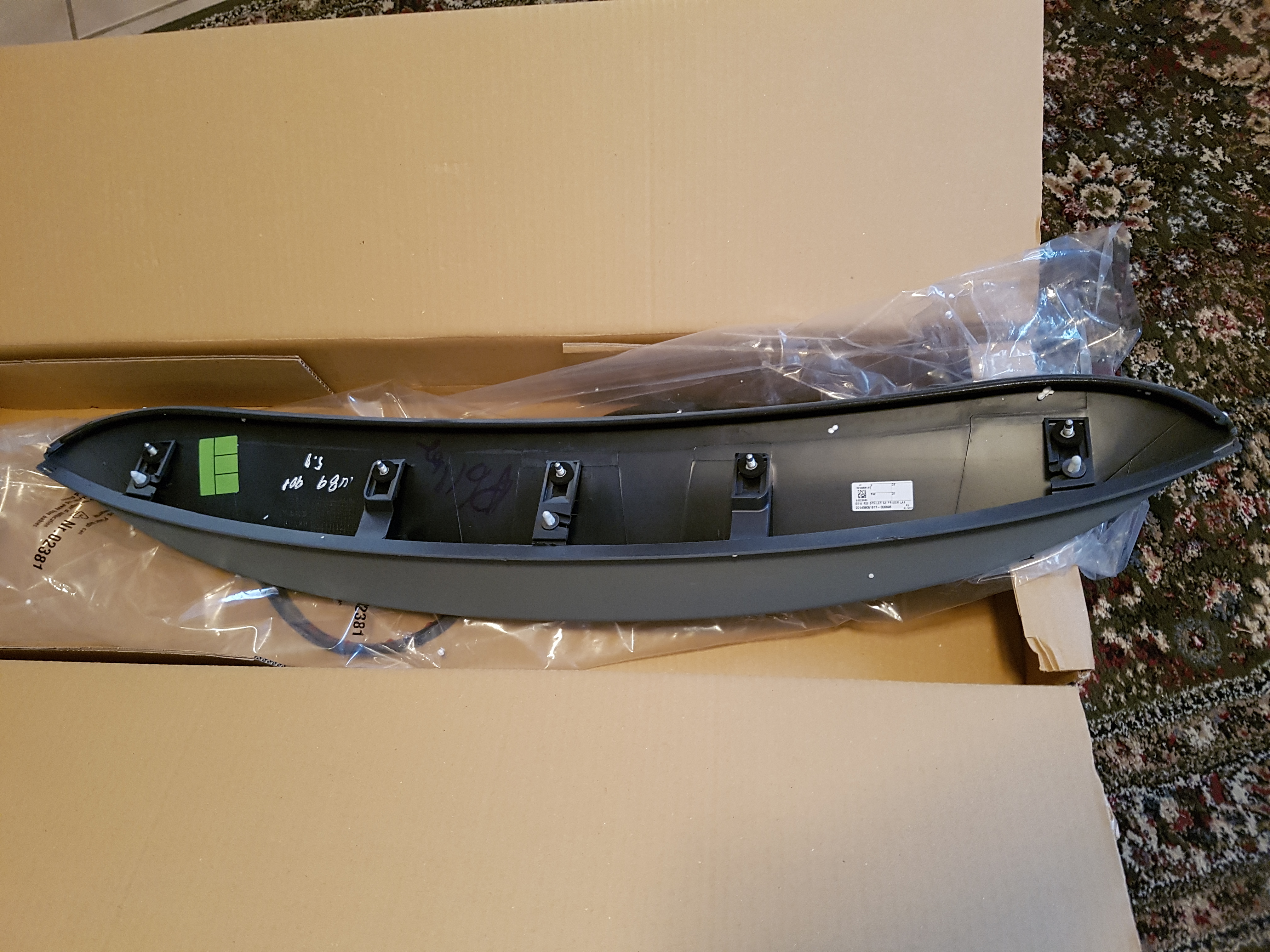 If you would like the "GP2" style spoiler without the OEM MINI price tag of $2k, the Orranje G-wing spoiler is a good option. I ordered one from the UK late last year and still have it brand new in the box that it arrived in. I paid about $540, which is still the current price with shipping to the US. With free shipping for the wing priced at $500, this is about a 10% discount. Please, only serious offers. As it is already discounted and brand new, please no low ball offers. The wing is black, unprepped and unpainted, so you can make it whatever color you would like. The side parts of the wing are matte, not the glossy type.