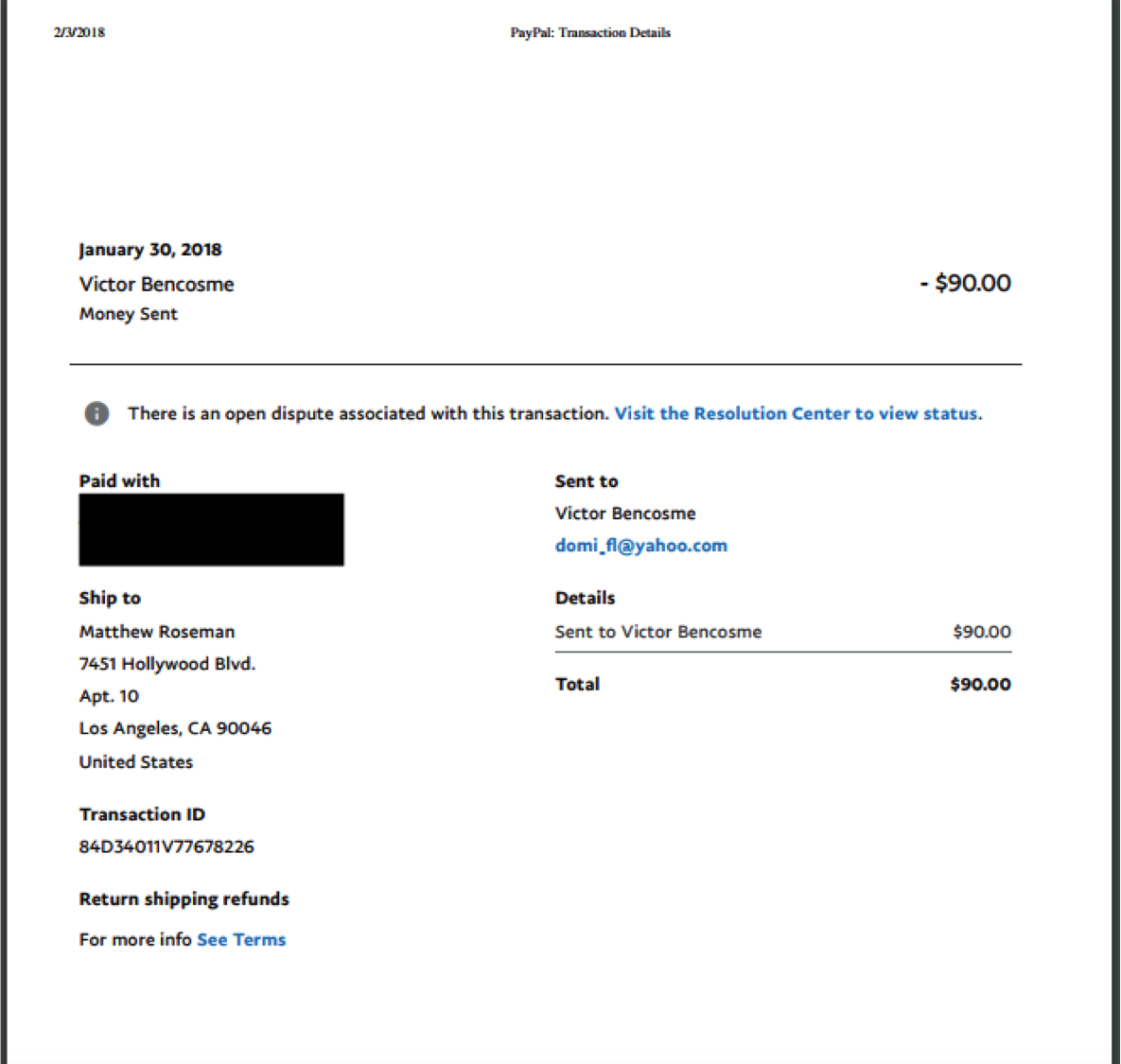 see attached proof of payment from my paypal account (i've blacked out my cc info)