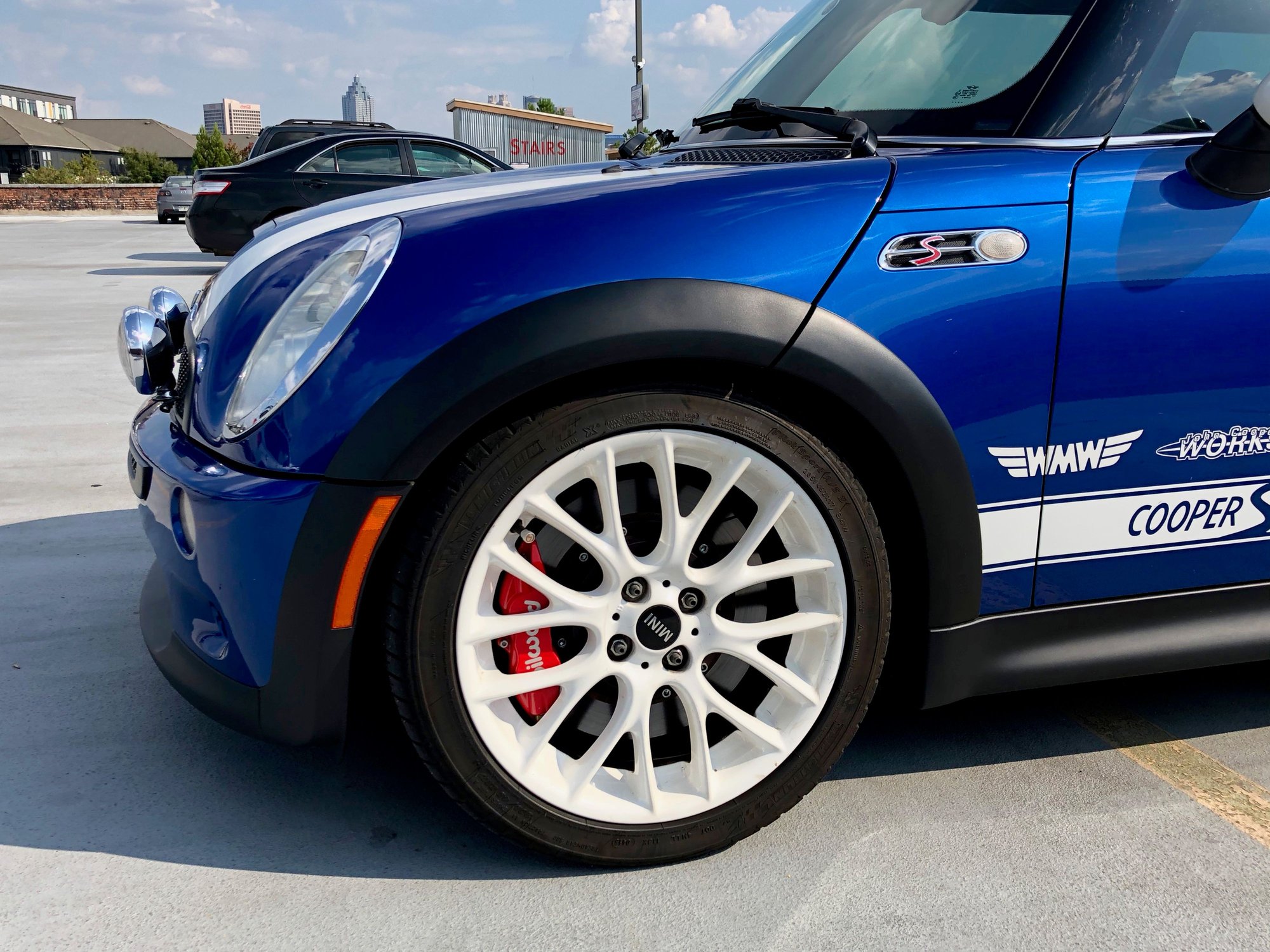 - R112 JCW wheels, powdercoated white ($1000+)