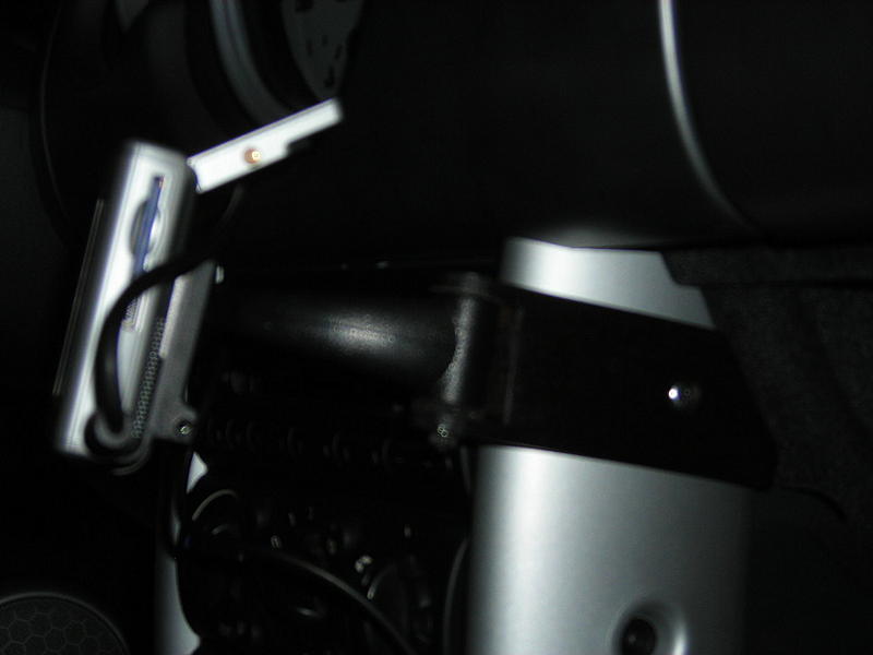 Route the wire to the bracket and attach it to the back of the tach with the provided screws and washers. Remount the tach to the steering column. I tie wrapped the black box and extra Nuvi cable to the cable leading to the 18 pin connector. Don't let anything droop down or it might rattle. Then I shoved everything back in next to the steering column and pushed the post on the connector back up into the hole. All of the Nuvi wiring stays up there with it.