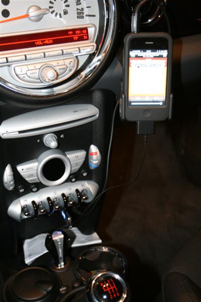 Anyone have any luck with some of the later posts here? Just bought a used 06 Cooper S, trying to come up with a good solution. My wife has a 3G and I have a 3GS. The car came with an Ipod cable that will interface, but not charge as others have experienced. Does the stereo in an 06 even have a USB port? Along with the Ipod hookup, there are power supply and a smaller audio jack cable run into the glove box, not sure what they were used for as the car came with the factory Garmin mounted. Radar detector?