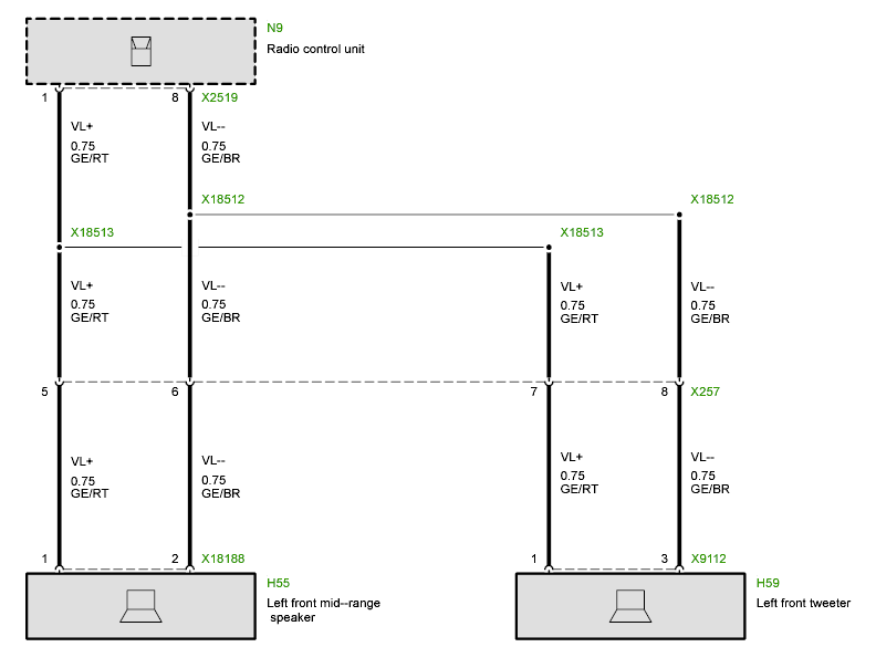 The X18512/X18513 connector that splits the signal is in the dash near the steering wheel.