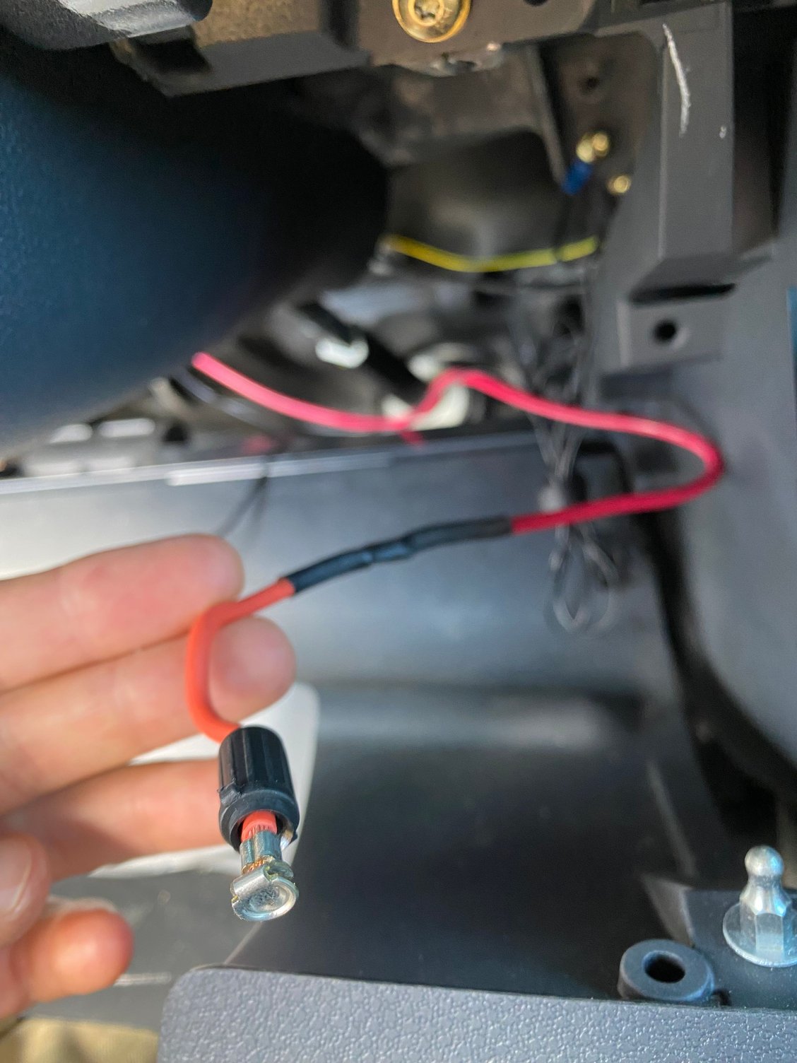 I removed the red wire with the light blue connector which was connected to a black wire and a ground that was screwed into the dash (you can see the screw in the background)
