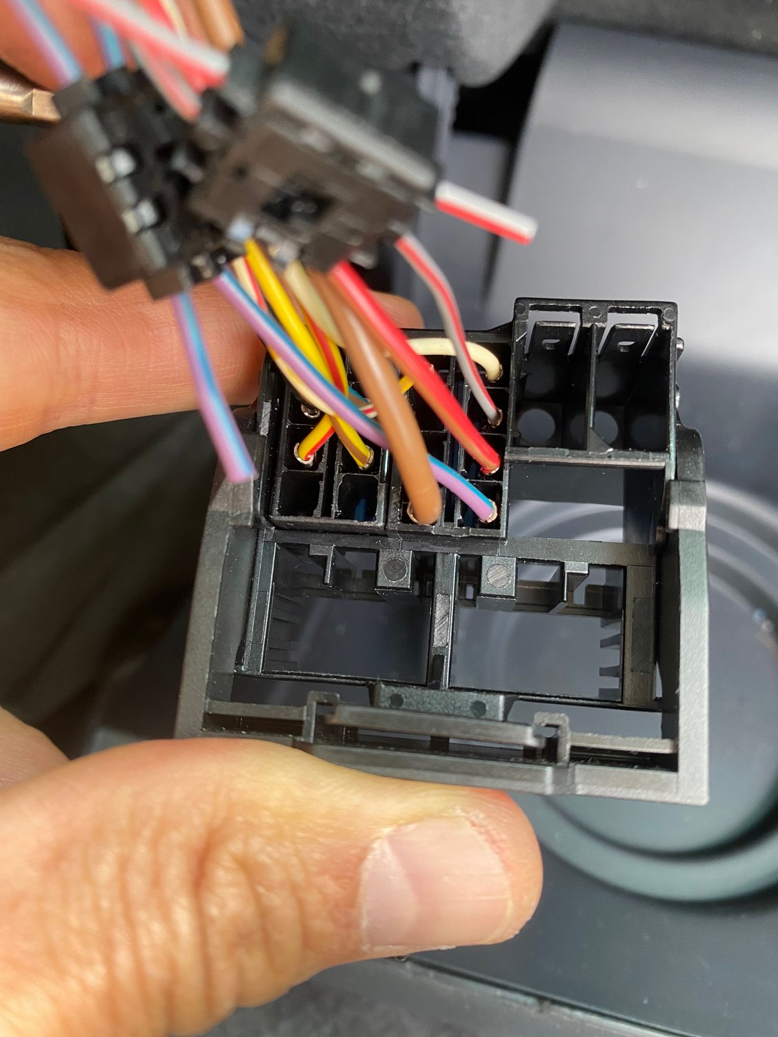I went back in at lunch today and took out any wires that weren’t in the pin out. None were directly connected to the back of the radio. Still no luck. I guess I need someone to put a meter to the lines to make sure they are getting power? The 2 cables (#14 &15) that are spliced with whatever splitter/junction box have a second wire that is attached that leads into the steering column. The main part of the wire follows the rest into the abyss that is behind the stack.