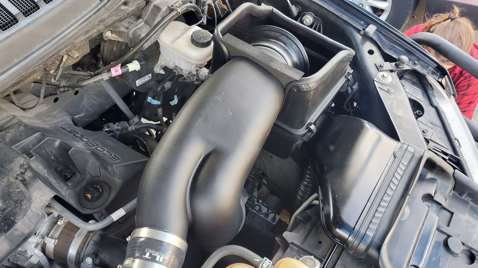 we just put on a jlt intake and I seen a perfect way to make a coldair ram for it so we I did. I even installed a mesh screen inside it to prevent debris or critters..