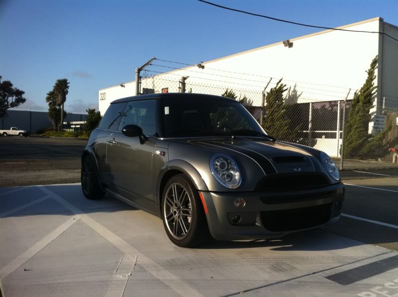 They're going to have to repaint my roof anyway and I'm considering having them paint it Mini black instead. I'd love to see some pics of grey Mini's with black roofs. I'm also considering reversing my hood stripes to white outlined black stripes so pics of that would be appreciated too.