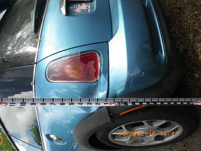 My car went off to the shop with about $3k in damage. It's had a tire replaced, a wheel refinished, a new bumper, new tail lamp assembly, quarter panel repaired, and some paint work and should be ready for me this week. (I've included a couple of photos from the insurance adjuster).