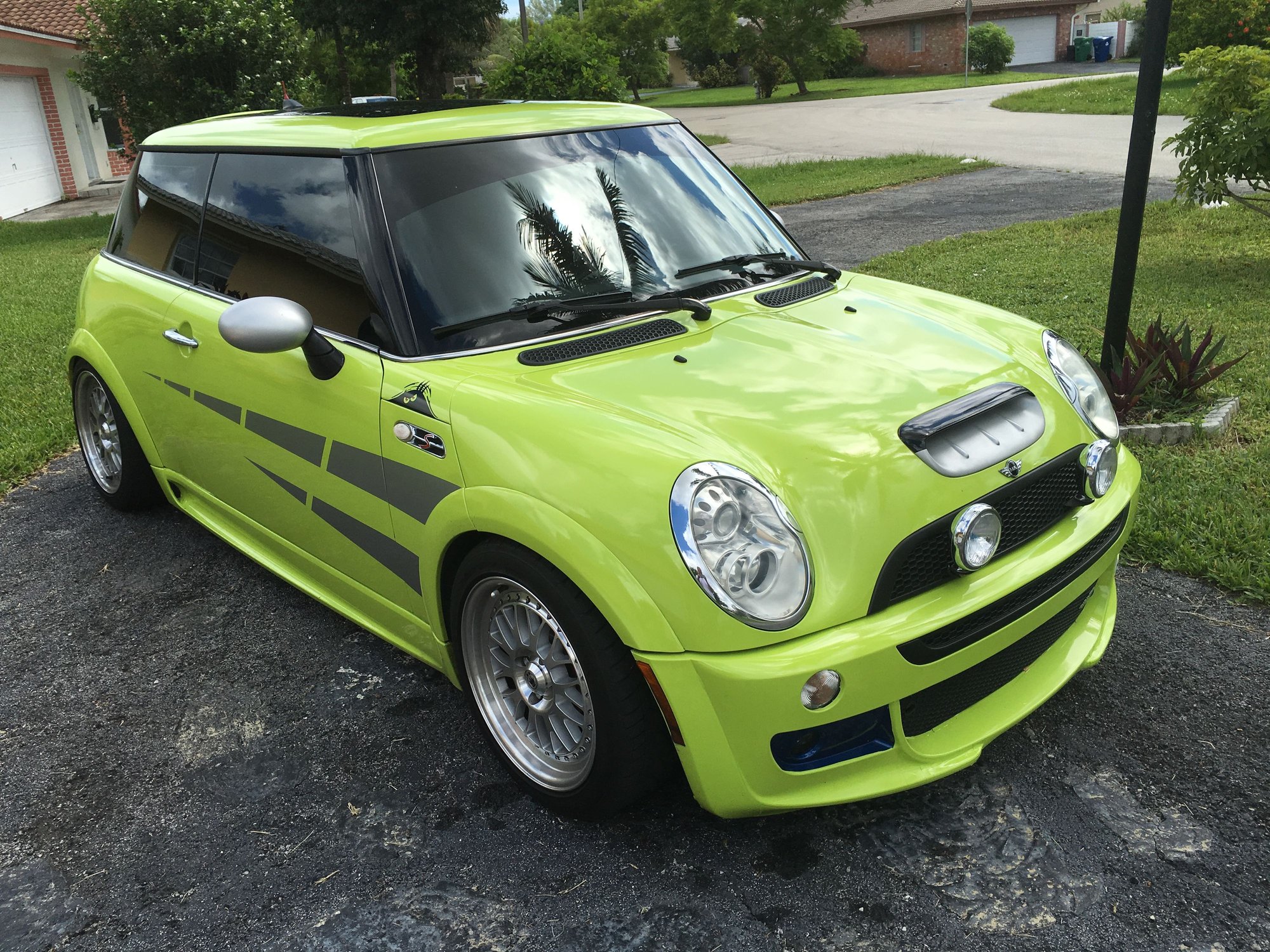 As for the blue in the jams, the car is wrapped in lime green vinyl, not painted. The PO did it himself with a friend so it's definitely not professionally done and is eventually going to change once the money comes available to do so, but for now it is what it is lol...