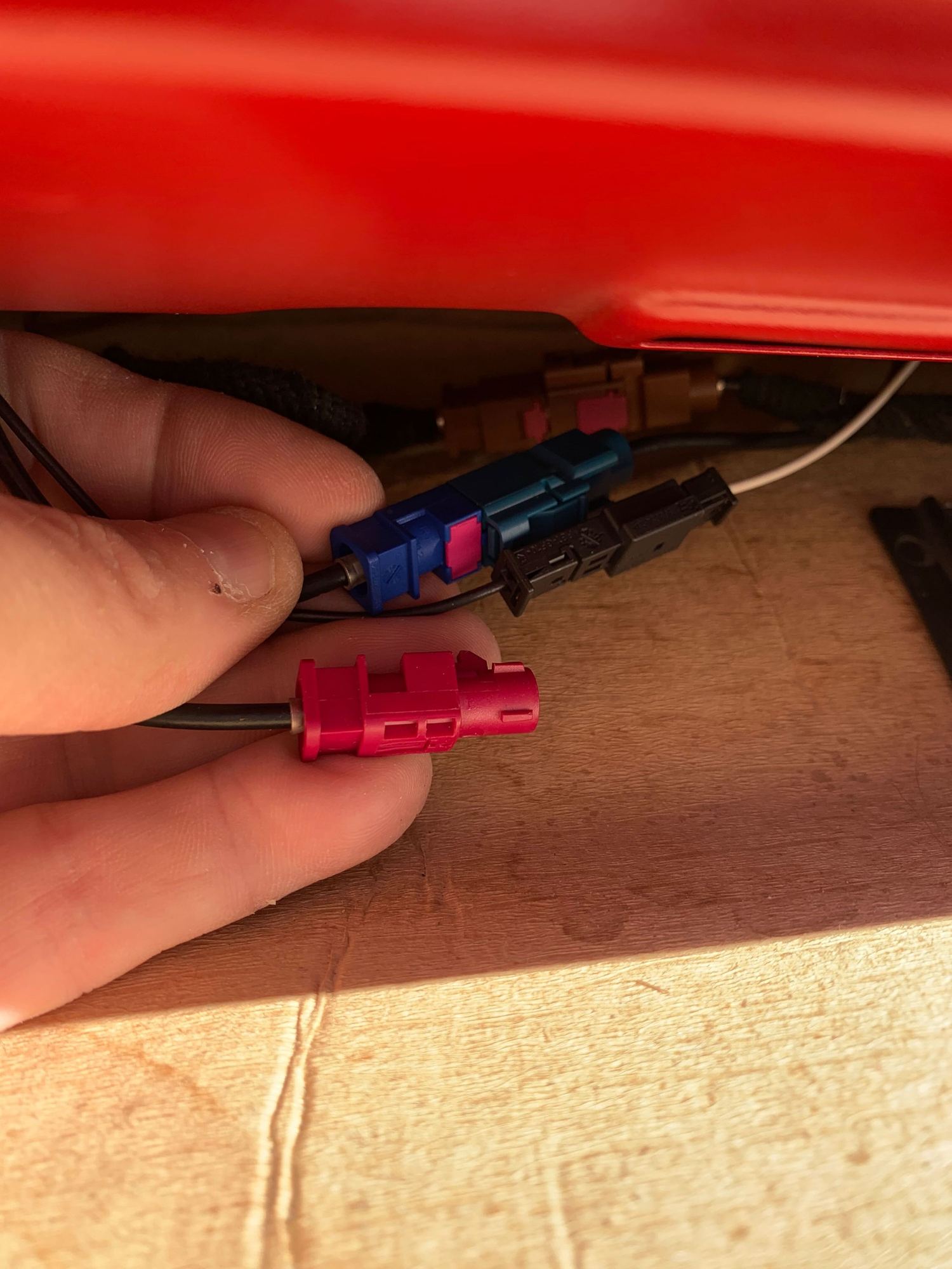 I have the same problem, my antenna looks just like Gadgetrunt's first picture, all smashed up. My car has also got the Navigation. I dropped the headliner a little and fished around for the wires? I saw this?