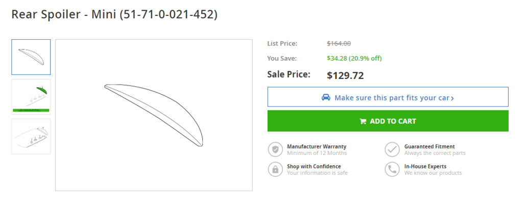 Salvage yard, price listed for a spoiler @$35. Minis are far and few these days at my local Pull-A-Part.