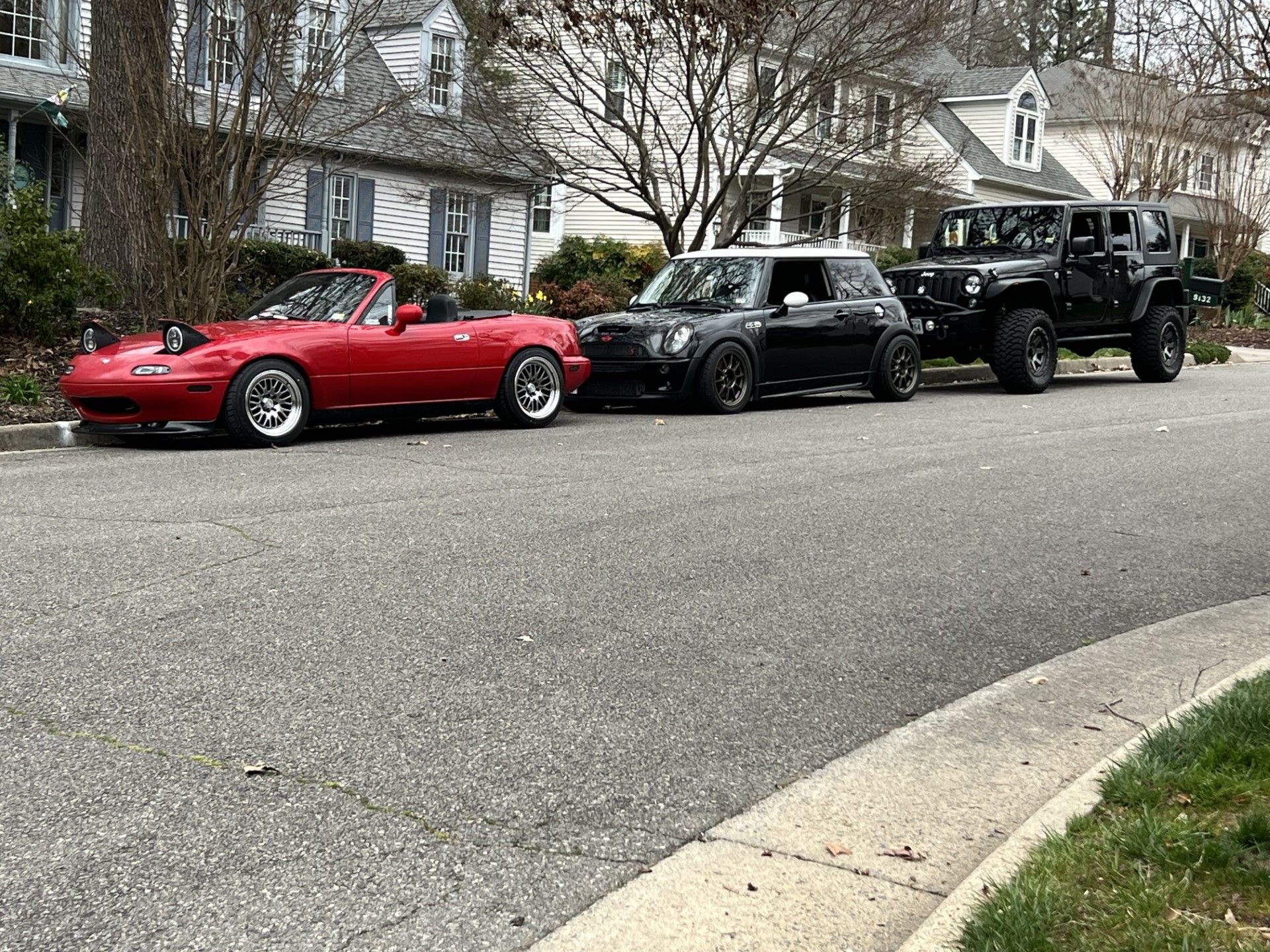 I guess we have similar taste. My “project” cars are a 95 Miata, 05 r53, 2010 Jku, and then we differ on my 04 350z. Good choices and the jeep and mini are for my 15yr old girl and 12 yr old boy.