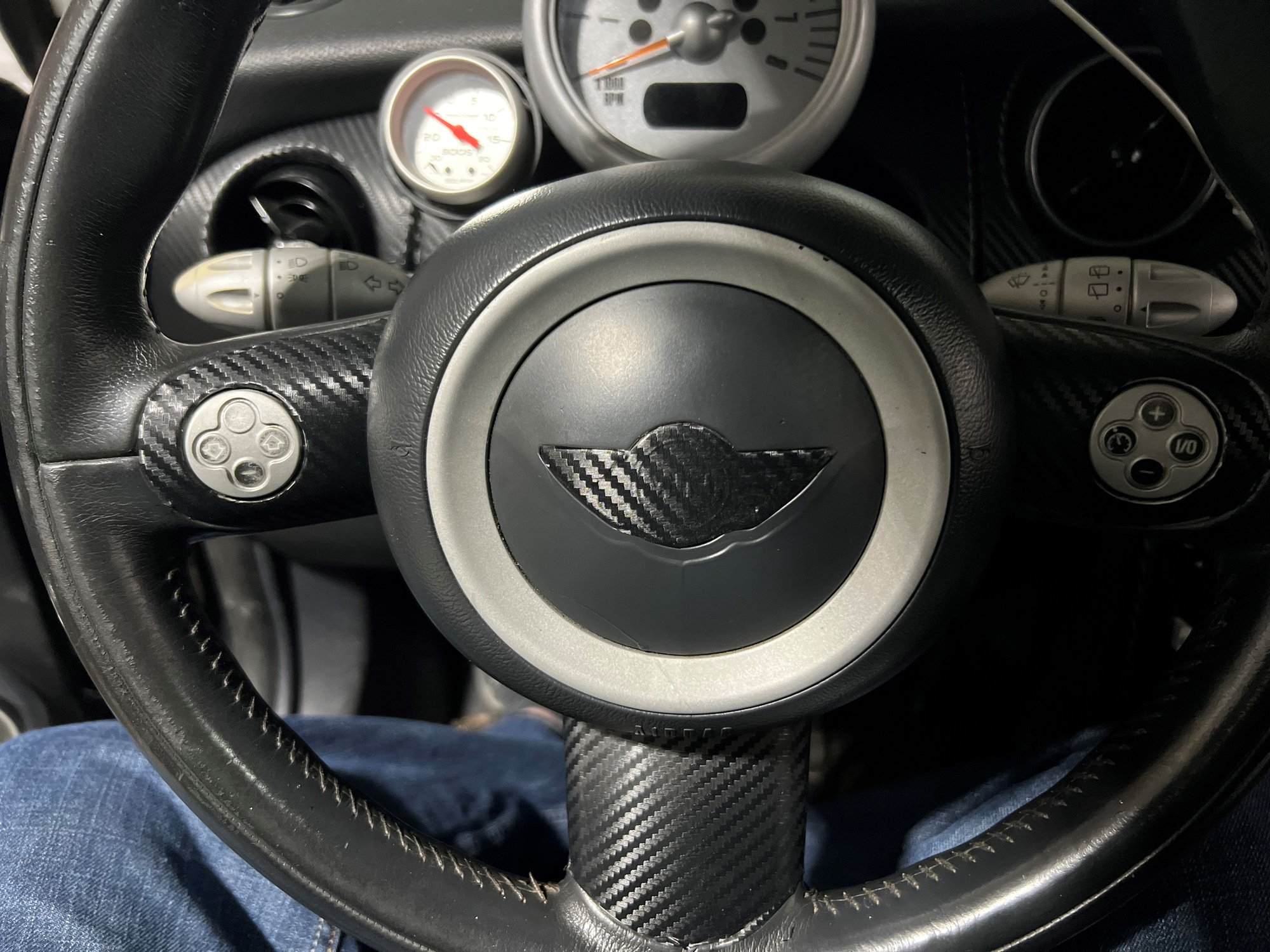 In spring of last year we started working on the interior. We redid the headliner in black added sound deading, upgraded the stereo to a double din with car play, wrapped the dash and installed R56 seats. Still have some work to finish up on the inside but its getting there.