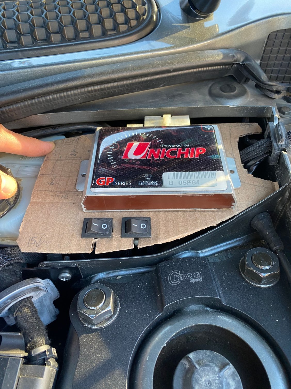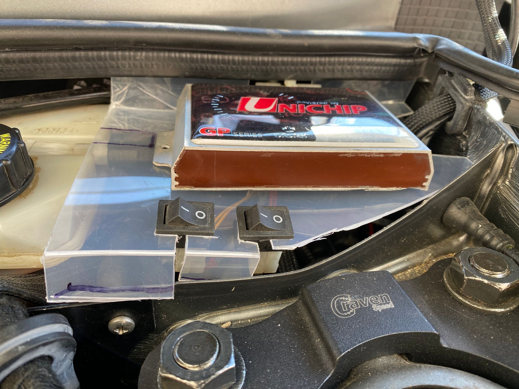 Hey @veggivet do you mind sending me a picture of your Unichip in the engine bay? I can’t find any and I’m sure there is a more elegant way to mount it and these switches than jamming in to the back of the engine.