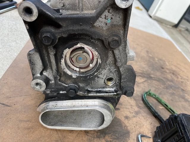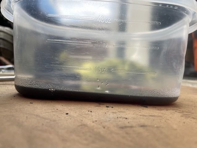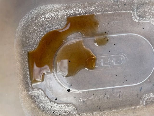 -the water pump side had less oil but was clearer in color. pulley side was under slight pressure (heard air escape as I pulled the drain plug)