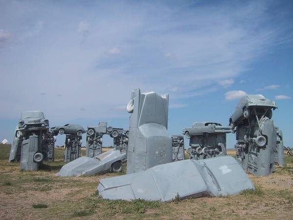 Winston at Carhenge in Alliance, NE....as close as he could get!