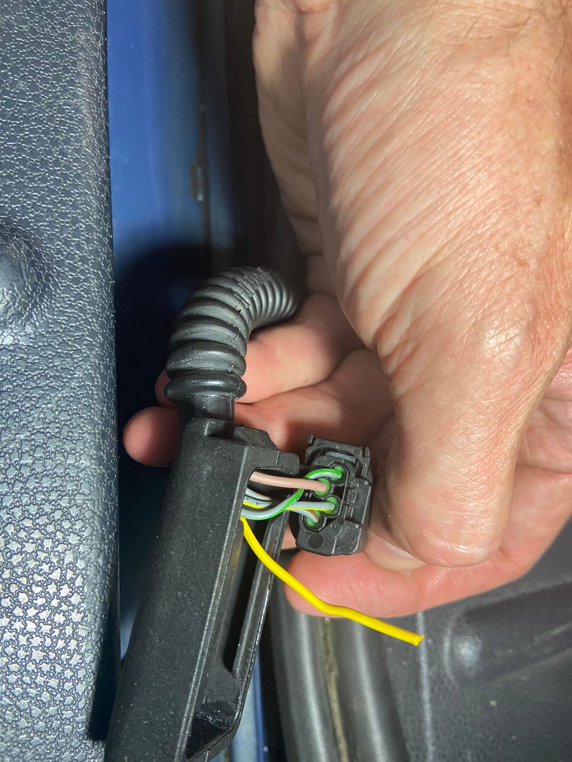 fredril12: Thanks for the prompt response. Your thoughts were exactly mine. I was going to do so, but not seeing a solid yellow on the other side held me back. I took the interior plastic off to explore where the other half of the yellow wire might be. You don't have to remove it to see the connector I photographed. It's at the base of the interior trunk hinge and just pulls out. I would love for you to take a look at yours - when it's convenient. That would help me a bunch. I couldn't find a video or other posting that showed that detail.