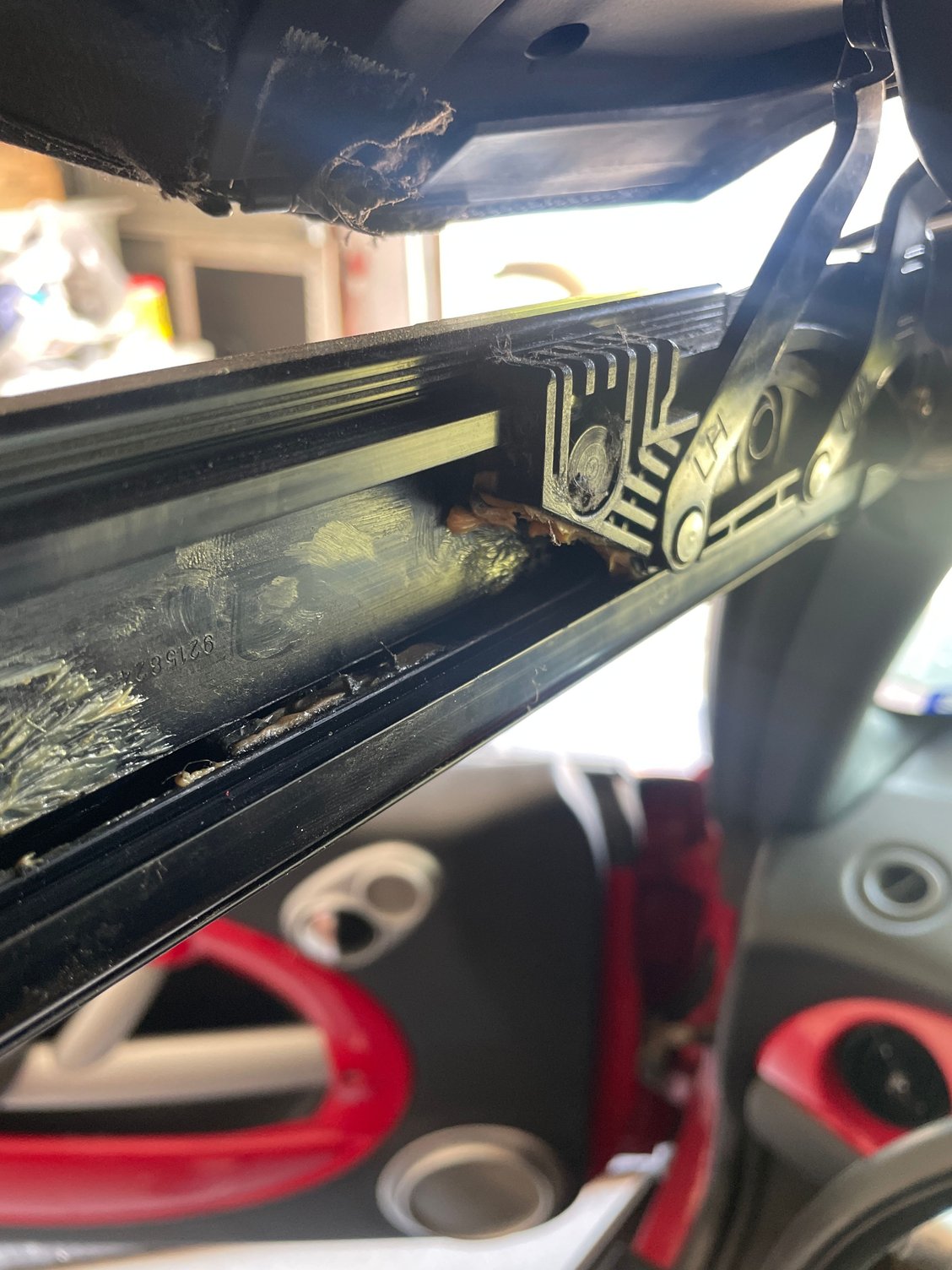 Having a problem with the sliding mechanism on driver side. I cannot even manually SLIDE the driver side. Pass side operated correctly. I searched everywhere to get assistance. has anyone had this problem. on top of this i’ve got to find the problem with driver rear window to complete the convertible repair process.