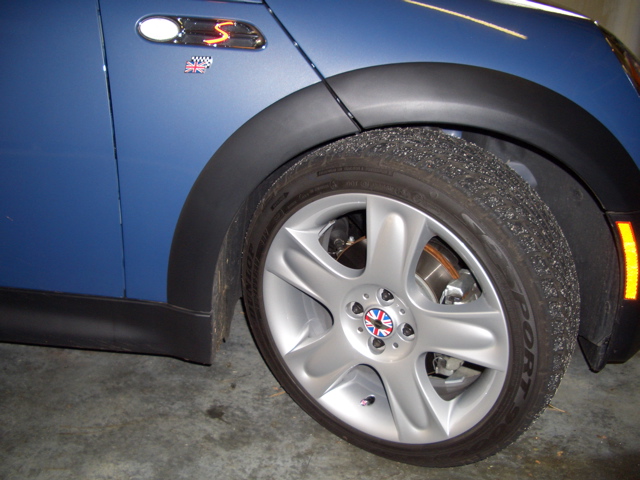 Mike at Aesthetic Creations has these now - several backgound/logo combos available. I also got the domed wheel centercap stick-ons - which add some cool color to the wheels. I think I'll paint my calipers red to really make it "pop"...