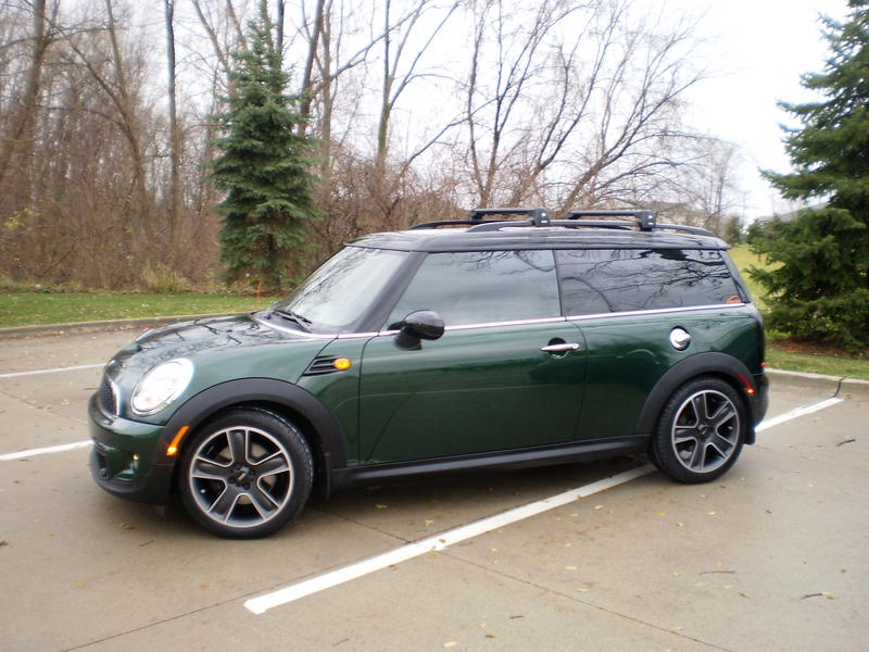 A few mods were added to the wife's 2012 Clubman S last week. Shorty antenna, window tint, powdered coated gloss black roof bars, new Continental DWS tires to replace factory runflats, Cooper side scuttles, powder coated orange 19 mm H & R sway bar, and G2 black painted calipers front and rear. Now we just need to get a roof basket.