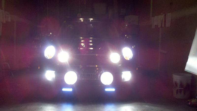 The big ones have are Hella 700FF with 110w PIAA super white bulbs (used on country roads), the lower ones are Hella 550 Black magic with PIAA super whites. The mounts are custom. I just tapped it on the battery using inline fuses. At the back theres 2 PIAA rear foglights too.