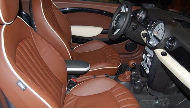 A month after buying it I passed by the dealer 250 miles away, and had my options put on, including chocolate leather matching shifter **** and handbrake cover (shown in contrasting attached photos, as well as a Brit plate frame, and mud-flaps (I need them on my road).