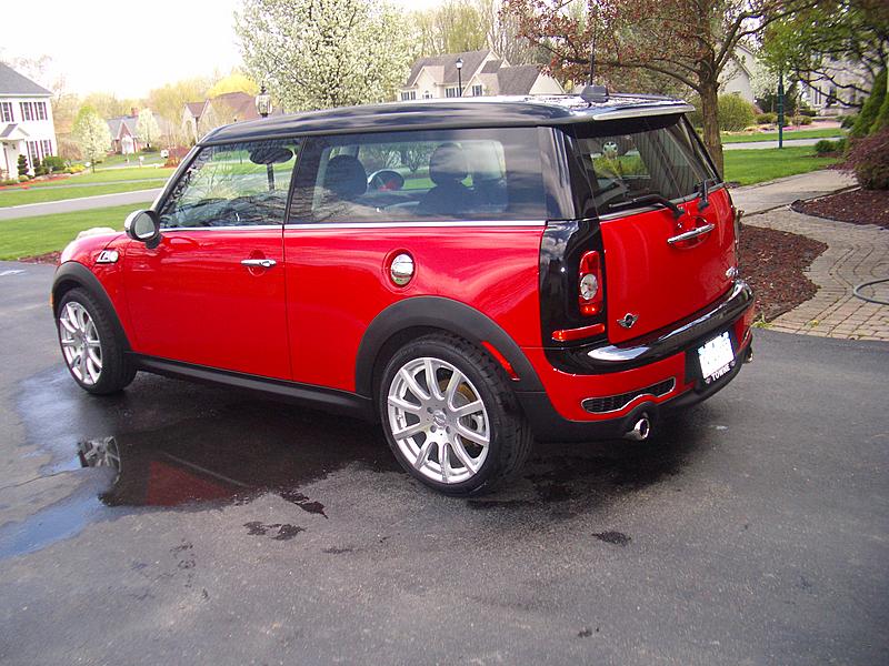 Nice picture smetje. Looks great. Do you have any pix that show a side view of the Clubman with those wheels? I have the same colors as you and am trying to determine if I should go with all silver wheels or if the combo black and silver might look good against the blue/silver color.