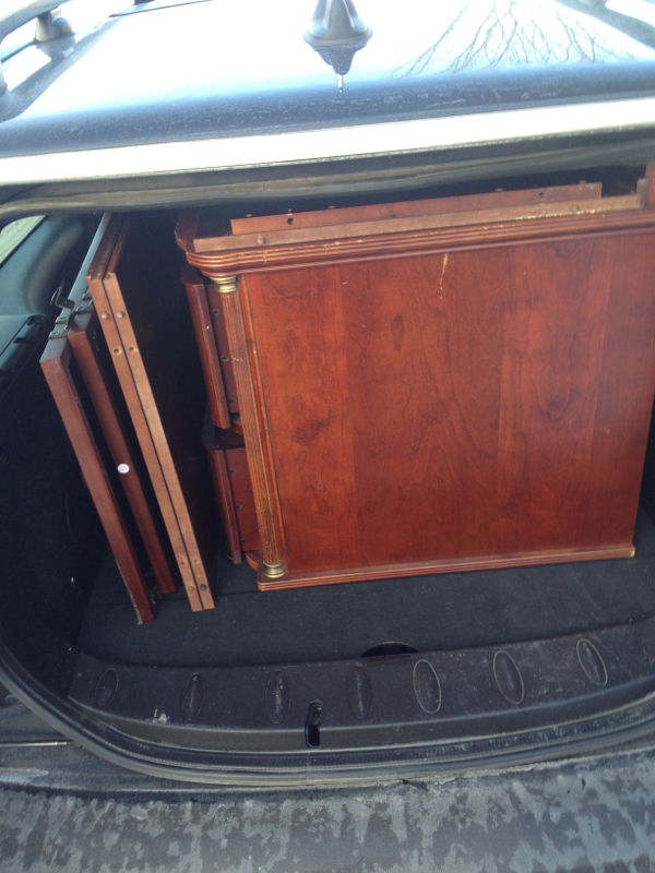 Forgot the pictures, but I just brought home 2 large adirondack chairs. Never ceases to amaze me what fits in these cars. Funny too because I'm usually halfway across the Lowes parking lot before I start thinking about whether or not I got too much! Been lucky so far.