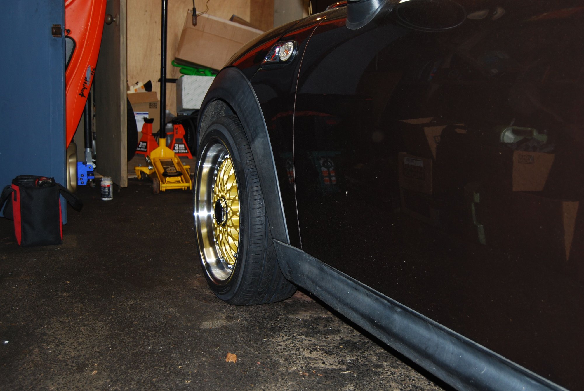 Sunday clean up.....tighten everything up, work patiently and mental check off that ALL fasteners are tightened. Reassembly really much easier than I expected. Will go in for alignment this week, even though I think it's fairly close to where it was when I disassembled. Anytime you take suspension components apart it's best to have it checked. Couple more pics from the reassembly and finished with the new wheels installed....
