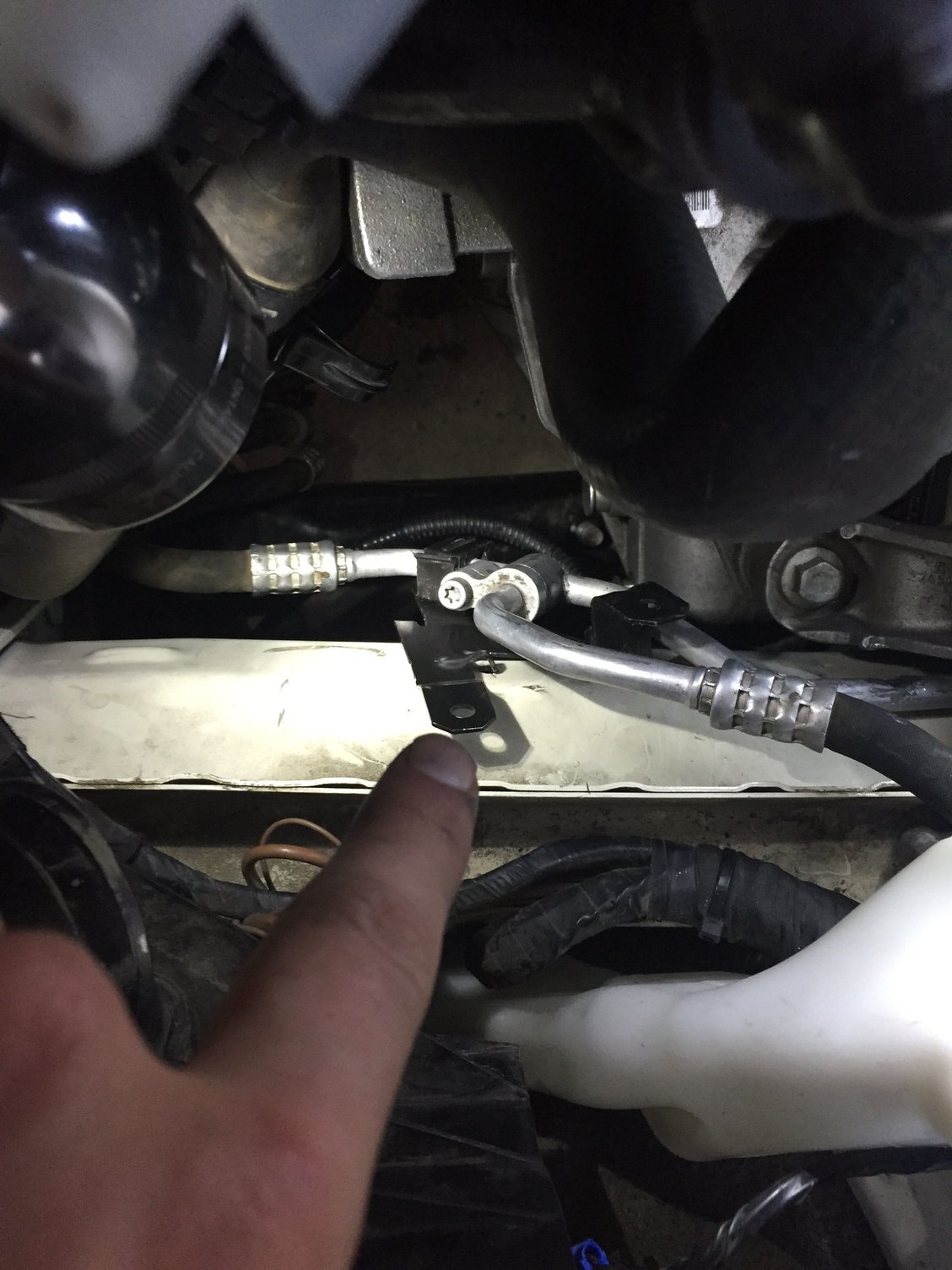 Maybe if we knew the year / model you're working with, someone could help. It doesn't look like my '07 S hatchback --- which does not have a shroud over the lower radiator hose. Your AC lines look totally different than mine. And, I'd guess the two tabs with holes are mounting brackets. Have you tried looking at the REALOEM illustrated parts breakdown?