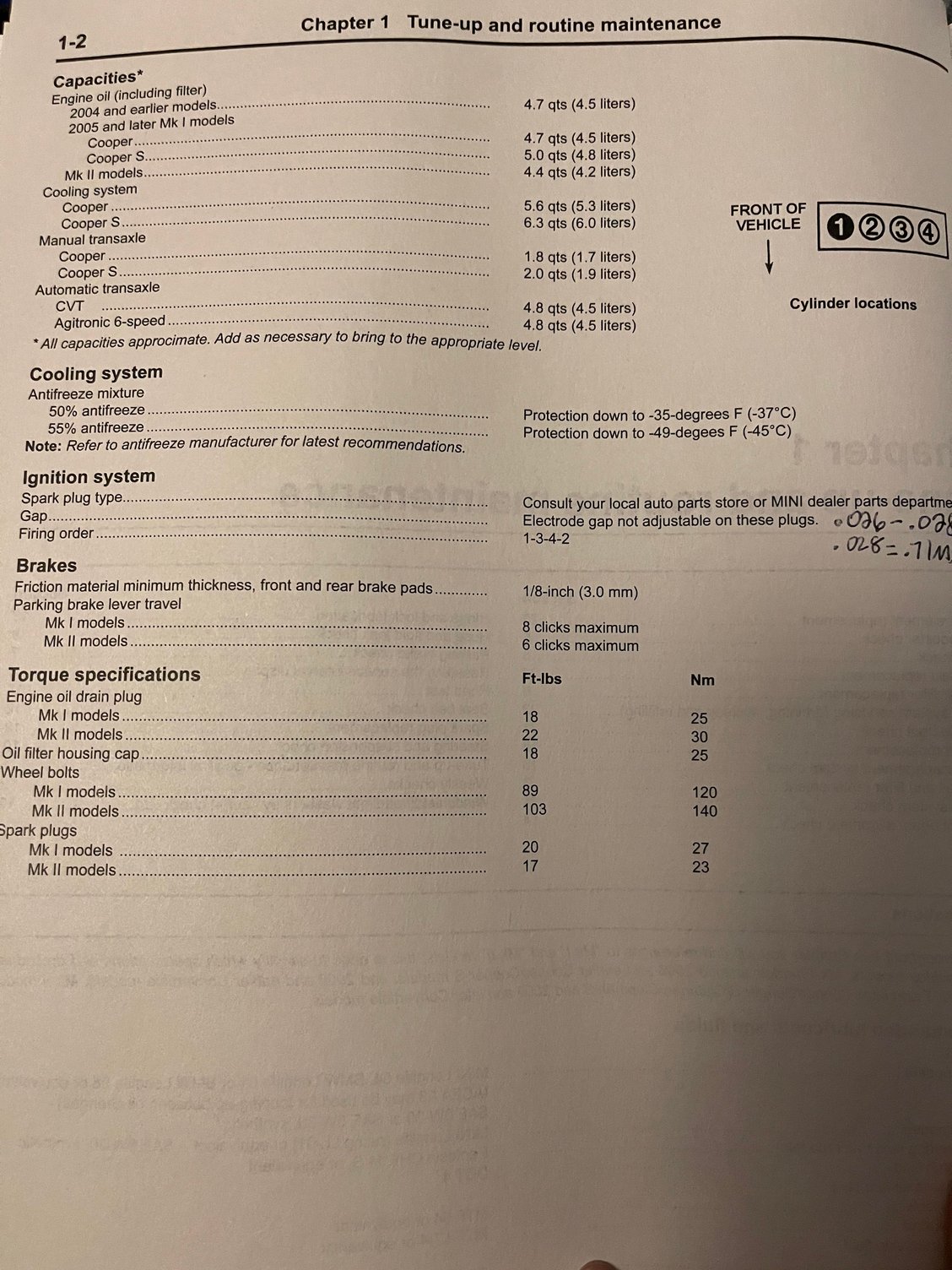 spark plug torque: 23 +3 Nm or 17+-2 ft-lb ( for Gen 2 MINIs(R55 R56 R57 R58 R59 R60 R61)