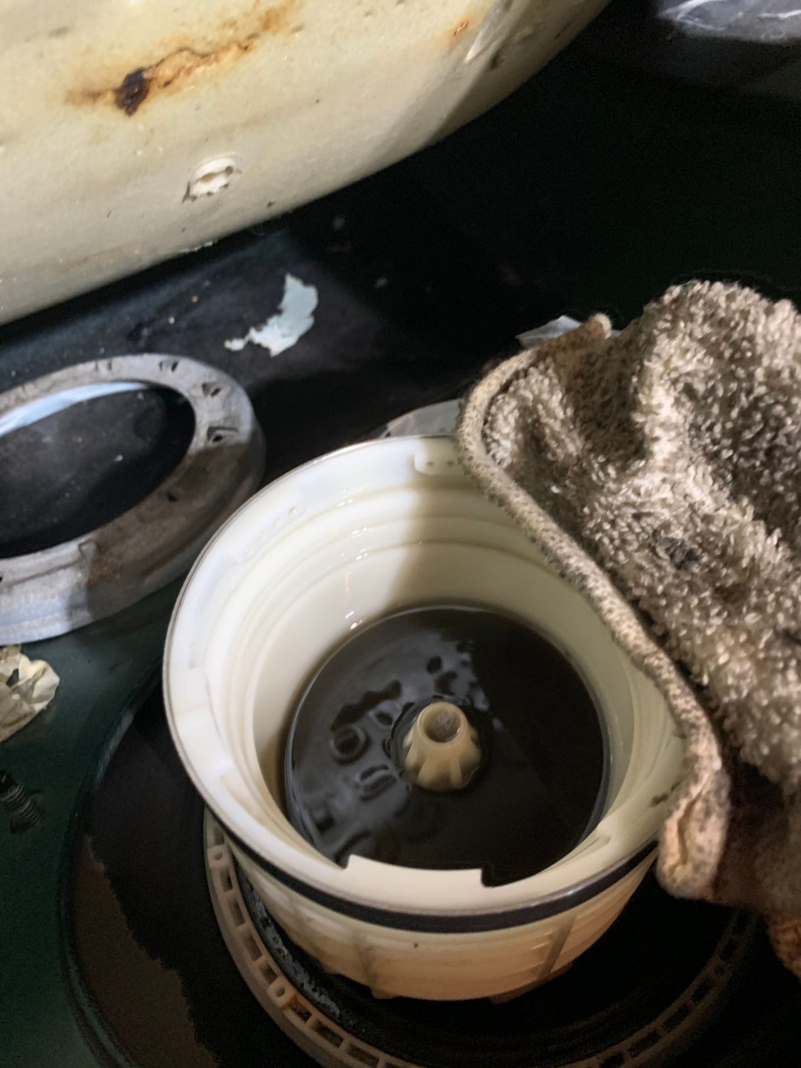 as a last ditch effort, I replaced the fuel filter again since it had about 20k miles on it. Last time the new fuel filter made the problem go away for a few months…..this time it didn’t help…..but…..When changing the fuel filter, I did notice the fuel in the filter housing was very dirty / black and the fuel filter was black. I didn’t expect the filter to be black already since it’s only 20k miles old.