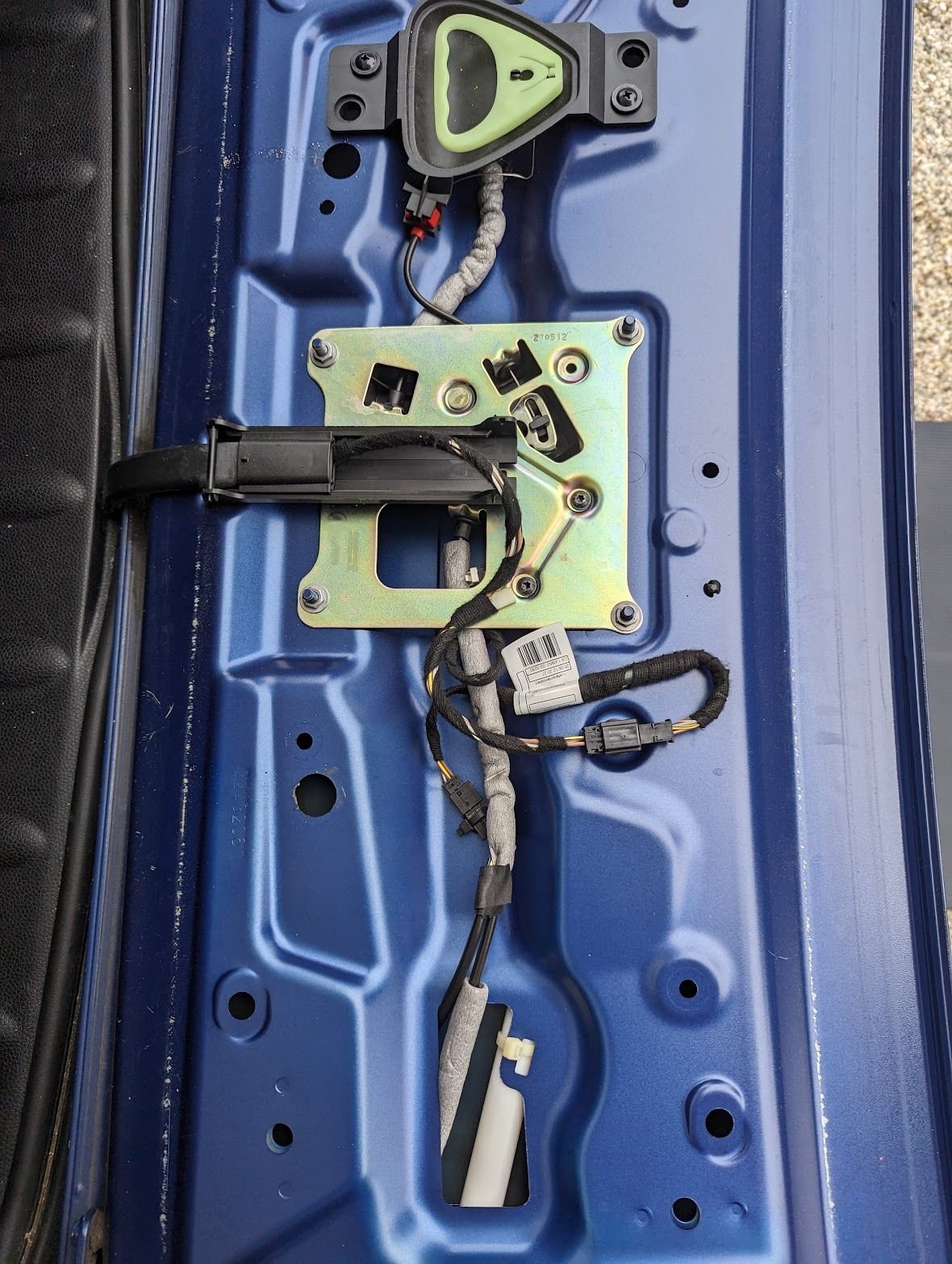 I removed the back trim of the trunk, as I wanted to find the reverse light 12V+ wire, but I can't find any green or blue wires there.
