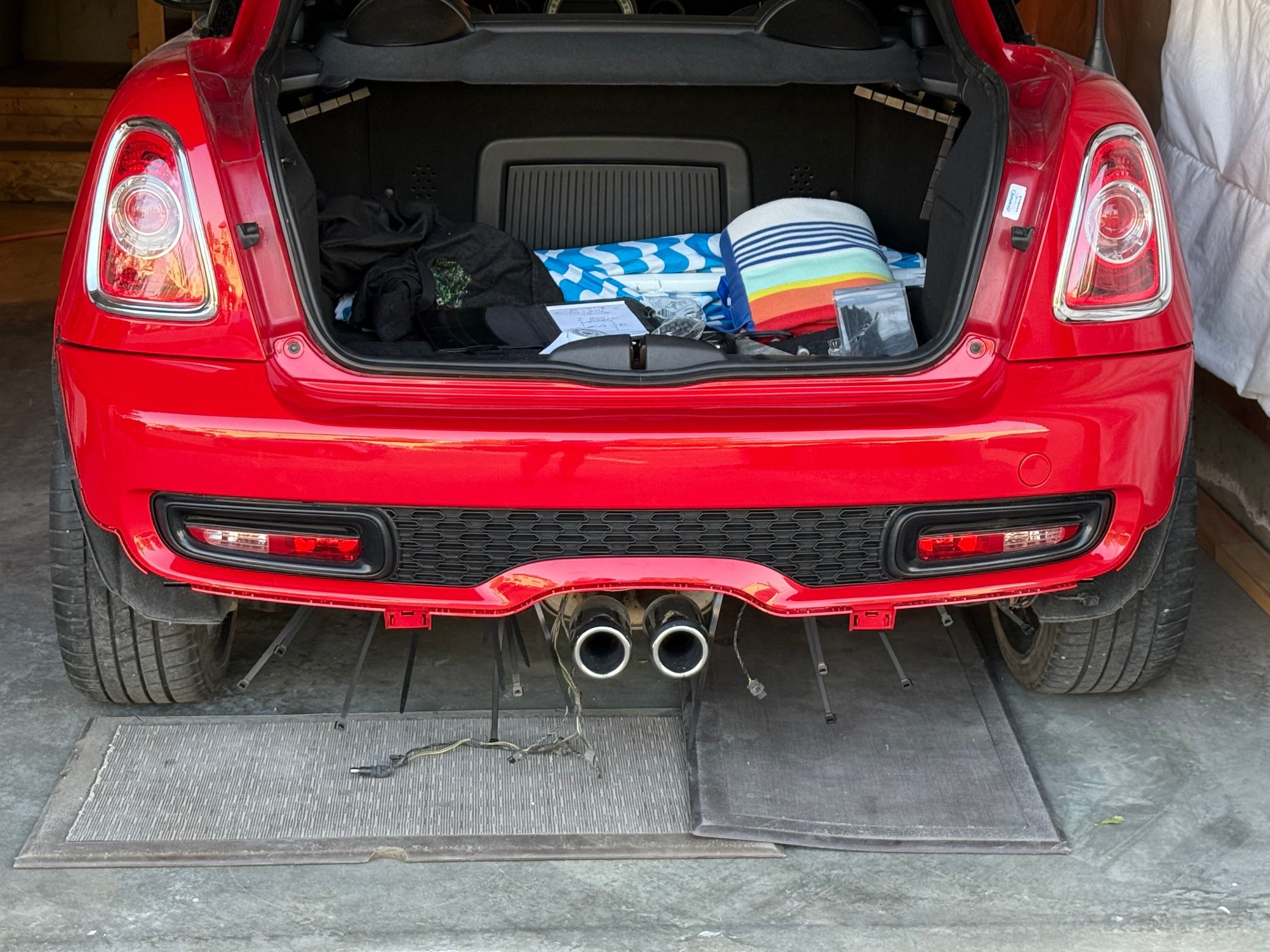 I'm sure there was more than a little angst when it came time to actually cut into the bumper cover. I know it was for me when I did it. Now though with the plug installed it looks essentially unmodified. Nice job.
