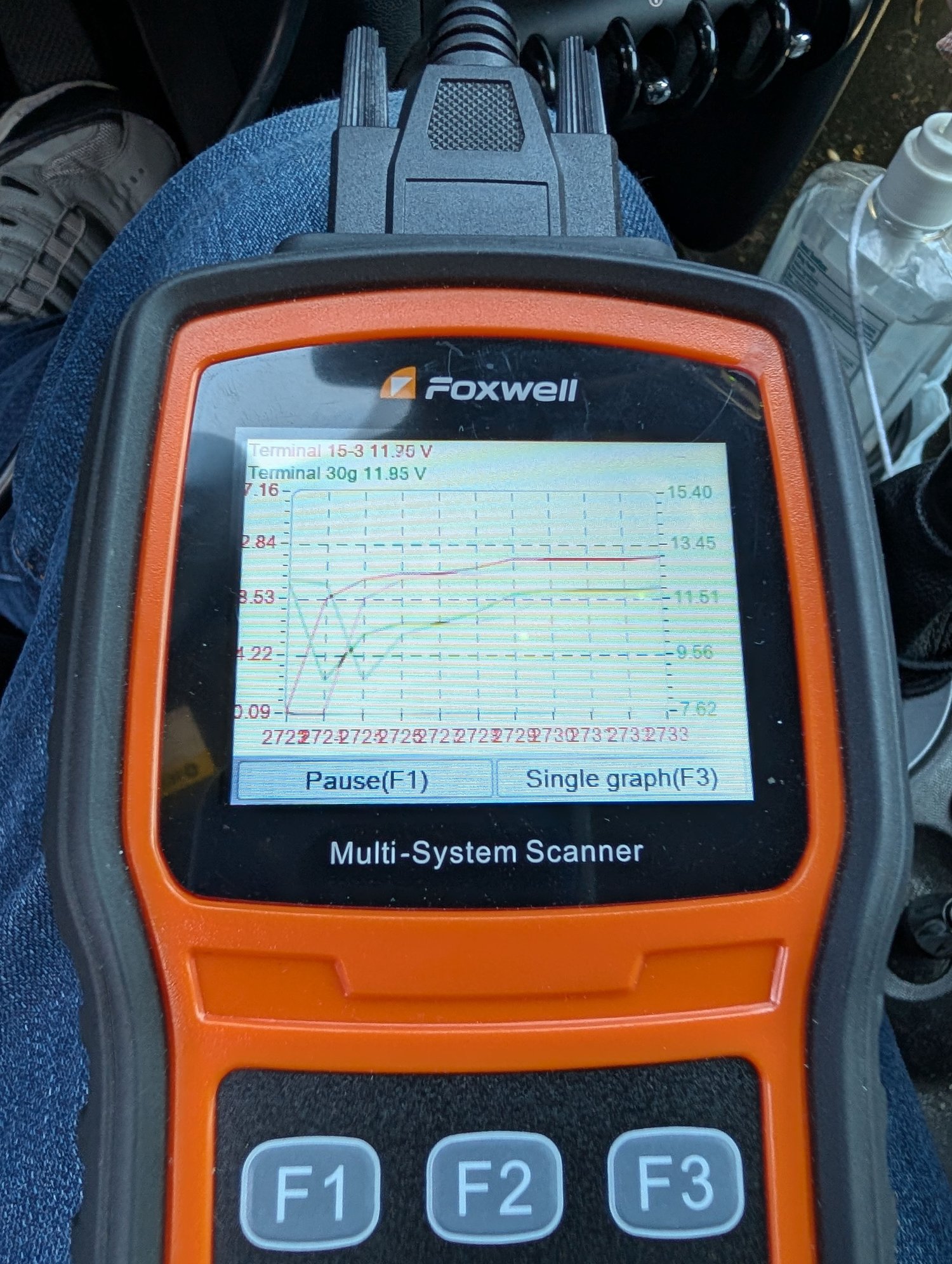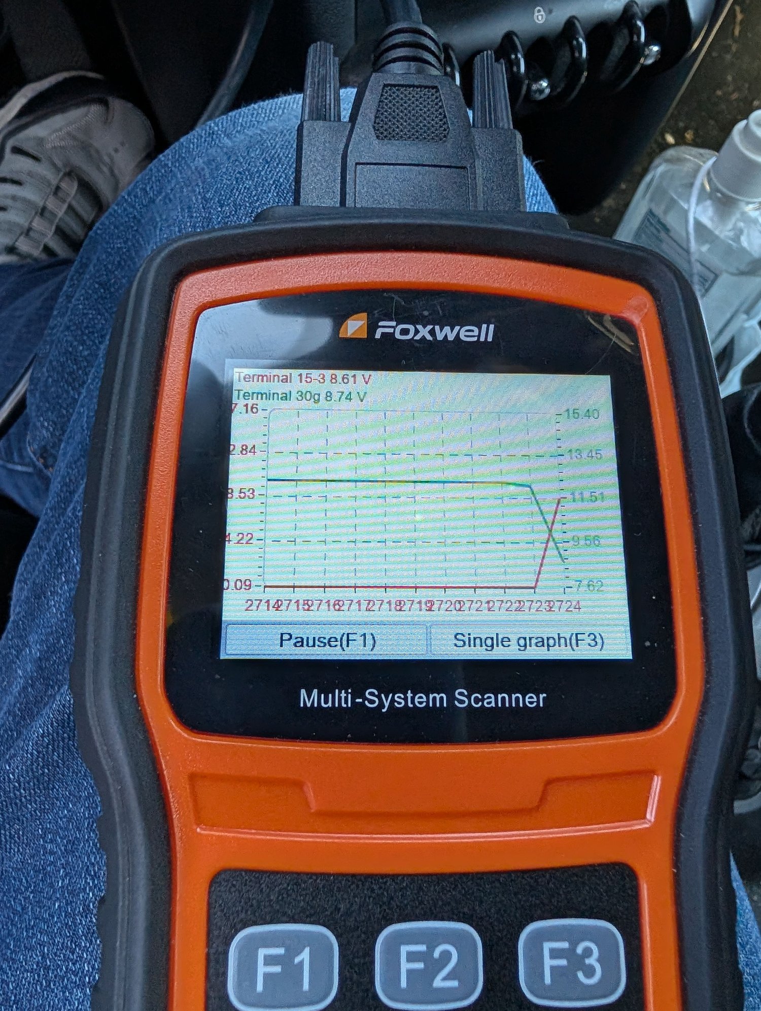 A simple way to test for a bad engine ground wire is to connect one end of a battery jumper wire to the (-) battery terminal and the other end to a clean, unpainted bolt on the engine block. Then redo the Foxwell voltage drop test.