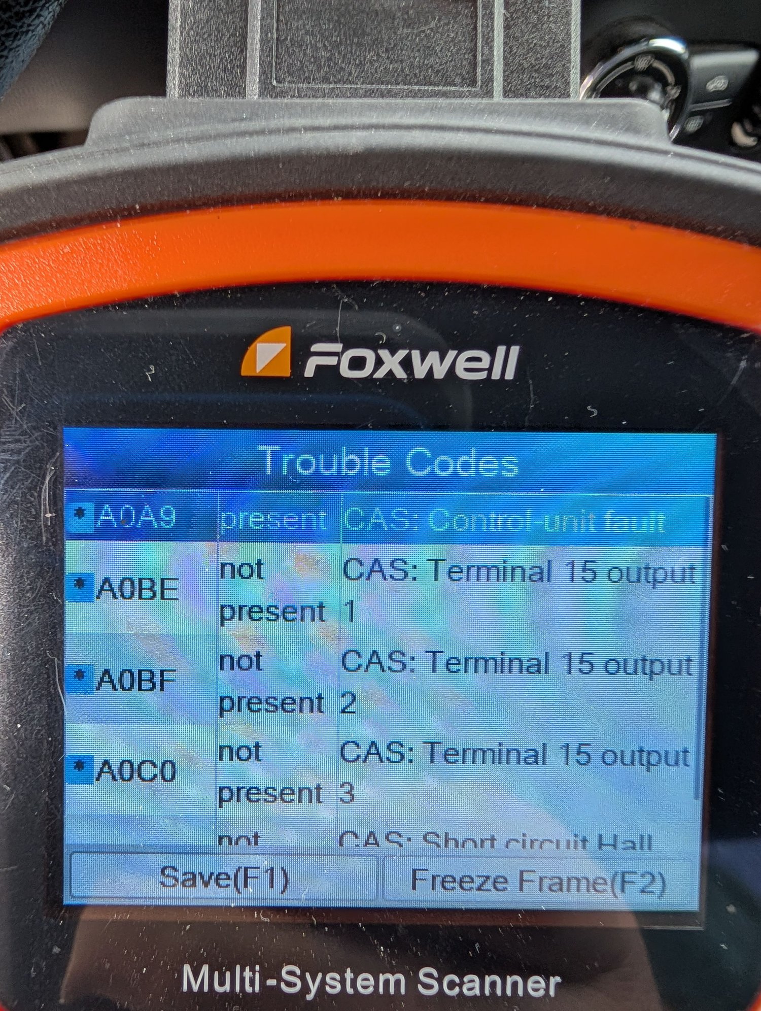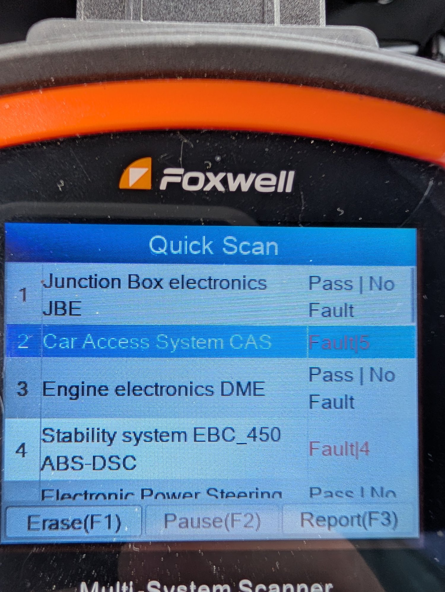 Ok, so I have an 2012 Cooper Coupe R58 with close to 200k mi on the chassis. I recently changed the brakes on all 4 corners and about a week later I am getting DSC failed warning on the display. When checked with a Foxwell scanner, I'm getting multiple (9) DSC codes including yaw sensor fault, longitudinal accelerator sensor fault, multiple DSC "no DSC message", and multiple (4) CAS codes as well, CAS Control Unit fault, CAS 1,2,3 terminal 15 outlet faults ... The car has refused to start a couple of times when start button is iniitally pushed but then will start if pushed again - The battery is new and coded to the car, the key fob is new and was coded by a dealer, the charging system is showing 12.3v cold and goes immediately to 14.3v after start, the ground cables are both intact and I have cleaned the contact points ensuring they are bare metal. The FRM was rebuilt and recoded about 6 mos ago. There was no water intrusion or corrosion in the footwell or floor at the time. Has anyone experienced all of these problems concurrently? ANY ideas of where to go from here will be appreciated. I gotta get this fixed, it's driving me nuts!