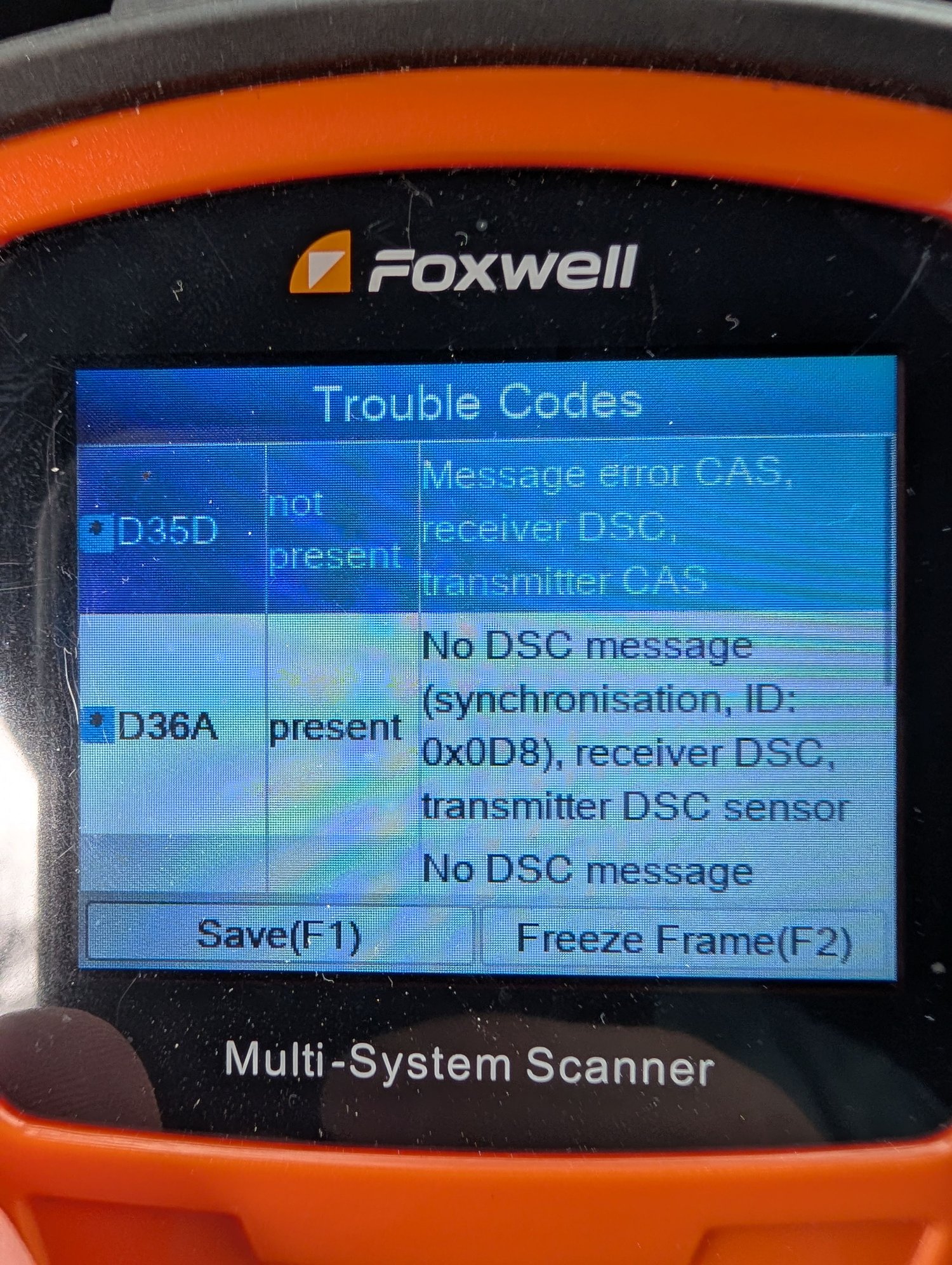 Clear all fault codes again, and then use your Foxwell scan tool to recalibrate the steering angle sensor. When done, drive the car to see whether the DSC fault codes do not return.