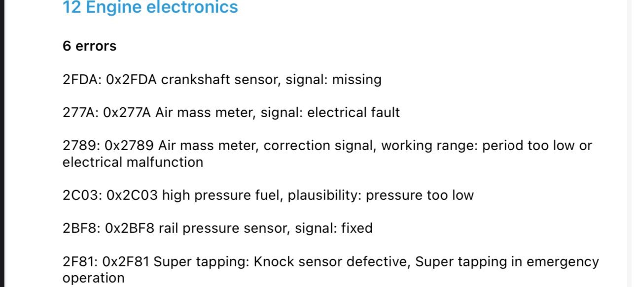 long crank, idle at 1200rpm and some codes:2C58 Charging Pressure Control: Switch-Off As Consequence