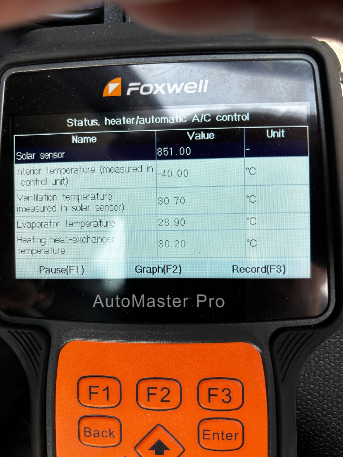 The internal temperature sensor has decided to have a dicky fit by permanently showing -40deg C, as such the AC only gives warm air.
