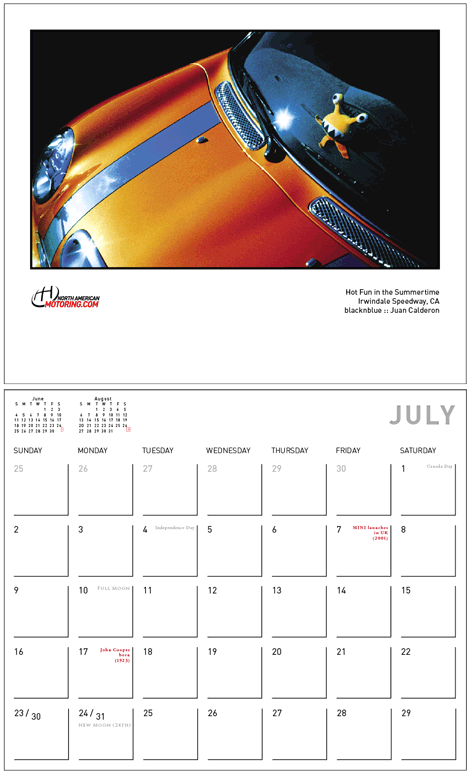 Great big props on a really nicely designed calendar, Mark. It really turned out incredibly; much better than any store-bought calendar could possibly hope to be, (especially for us MINI owners).