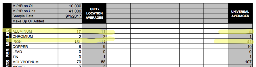 We're looking at a fair amount of metal here. Aluminum is from the pistons/bearings. Iron comes from steel parts like the crankshaft and cams. A longer run and spirited use can make add more metal than you'd see otherwise, but we're not convinced this engine is wearing as well as it should. It'd be a good idea to try a shorter run and see if that can help bring about some improvements. There is some fuel, but 0.5% is harmless. No coolant or excess dirt is present. Oil filtration is working well (low insolubles). Try ~7,000 miles. Check back to keep an eye on wear.