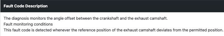 P1339 - Exhaust Camshaft: Angular offset to crankshaft is outside tolerance range