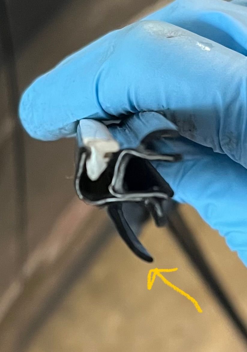 Sorry i just saw this, yep when the front window gets replaced...(99% of MINIs have the front window replaced due to how low and upright the window is). The company that does it (safelite, etc..) adds too much window weld and on the bottom the gasket does not have enough room to hook on. Ask me how i know with multiple MINIs and windows replaced. You have to trim back the under side window weld a little. Hopefully when you do that they did not get air bubbles or a small bead as that would then let moisture in. Rare but i guess it could happen.