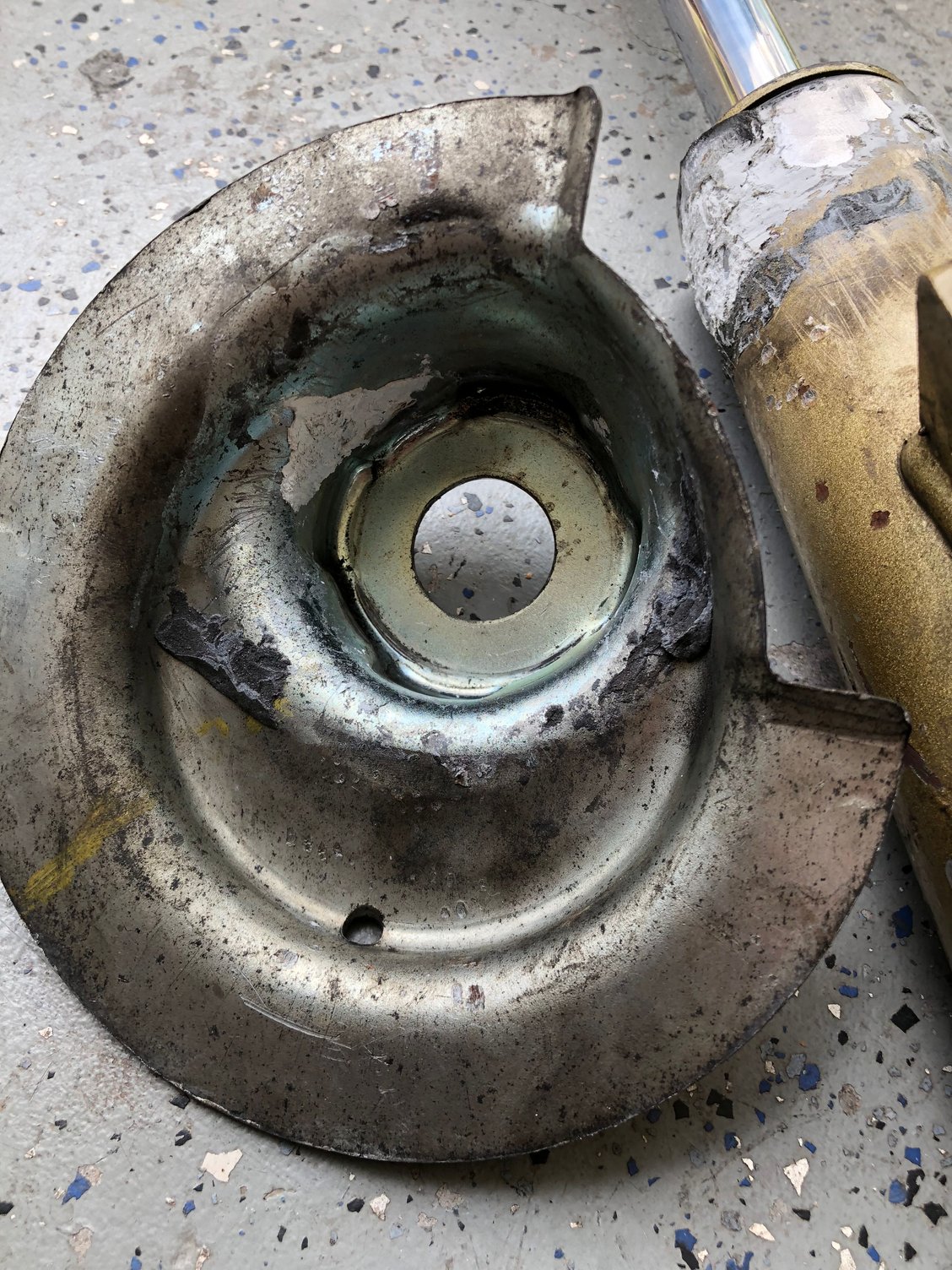 the white stuff that you see is the white JB weld that i put hoping the tube will held in place and the spring will turn along as a whole but it didn’t, and continue to make noise whenever i hit a small bump or turn rubbing something under, so you to tell the world its ANOMALY.. what turns when you turn the wheel if the perch is/are loose instead of the bearing on the top mount? Rest my care ...
