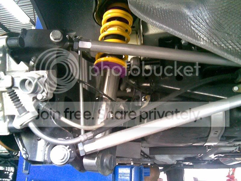 Webb bar - if you look thru all the crap, you can see the red bushing that holds the bar to the rear sub-frame - to the left of the upper spring perch.