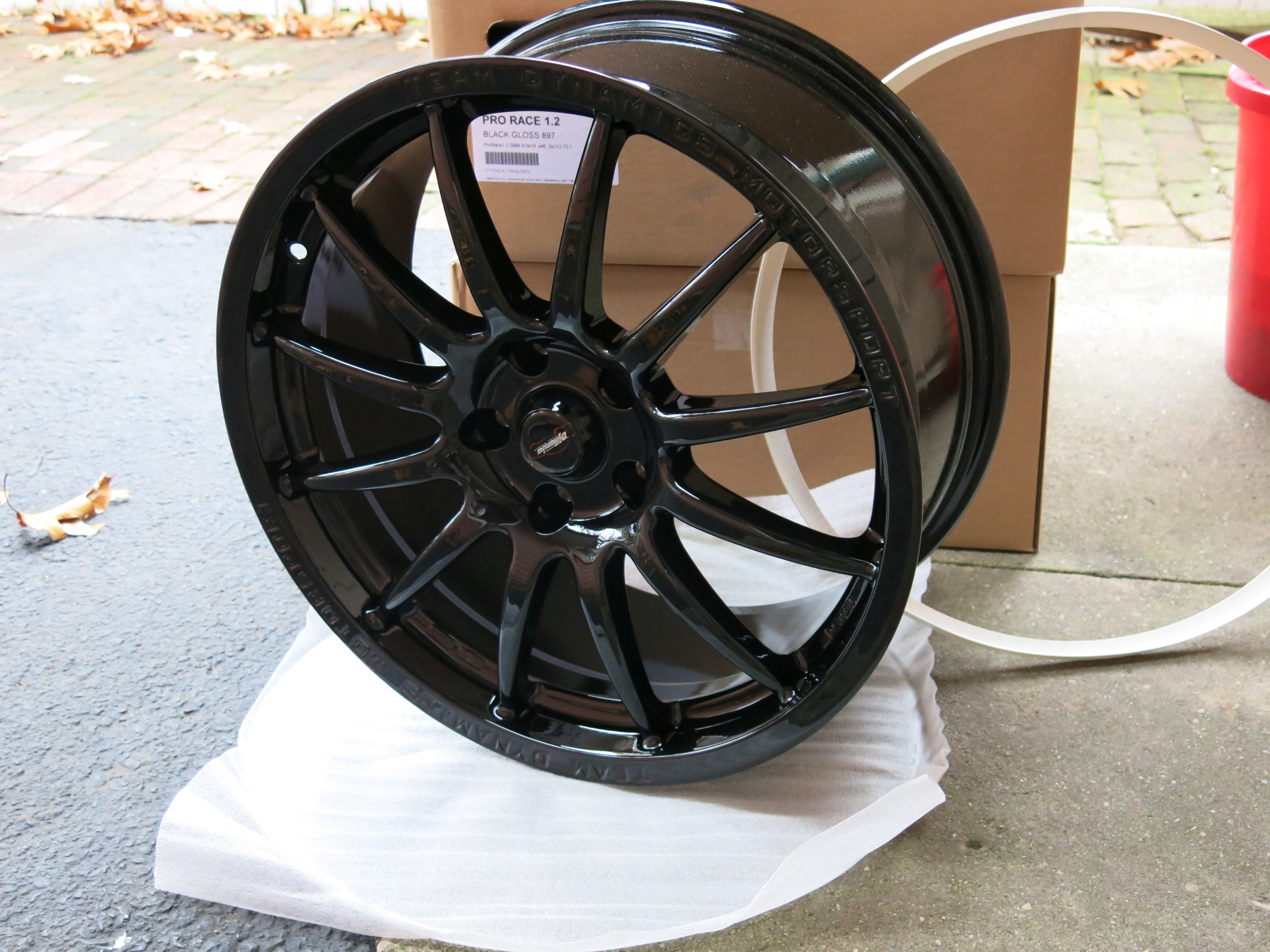 So this is what I finally was able to finish. Planning to powder coat the rims as I'm not a fan of the black chrome color. They are Yokohama advan kreutzer xi; distributed by mackin industry. 17x8 running on 215/45/17. Getting alignment done as we speak because the rear rubs on bumps and dips. Hopefully some negative camber will fix it.