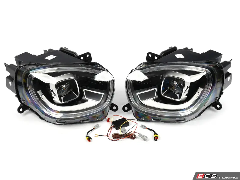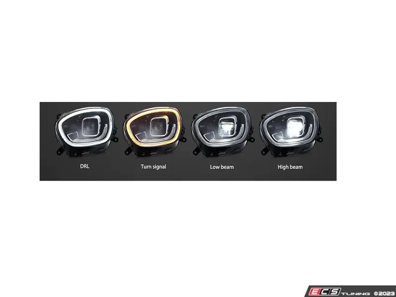 These headlights are designed to resemble the later Gen 3 F60 LCI+ MINI OEM LED Projector headlights, but are for the F60 MINI Cooper Models. Featuring high impact plastic lenses with black housing, these lights use an LED DRL and black exterior LCI+ design.