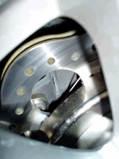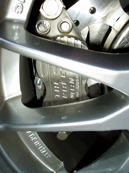 As you can see, it clears my 16x7 OZ Ultraleggeras quite handily - it does NOT clear the OEM Daytona wheels. I'd like to see if it will clear the webspokes. Anyhoo, it should clear most aftermarket 16" wheels, and will definitely clear 17's. We can provide measurements for seeing if your wheels would fit.
